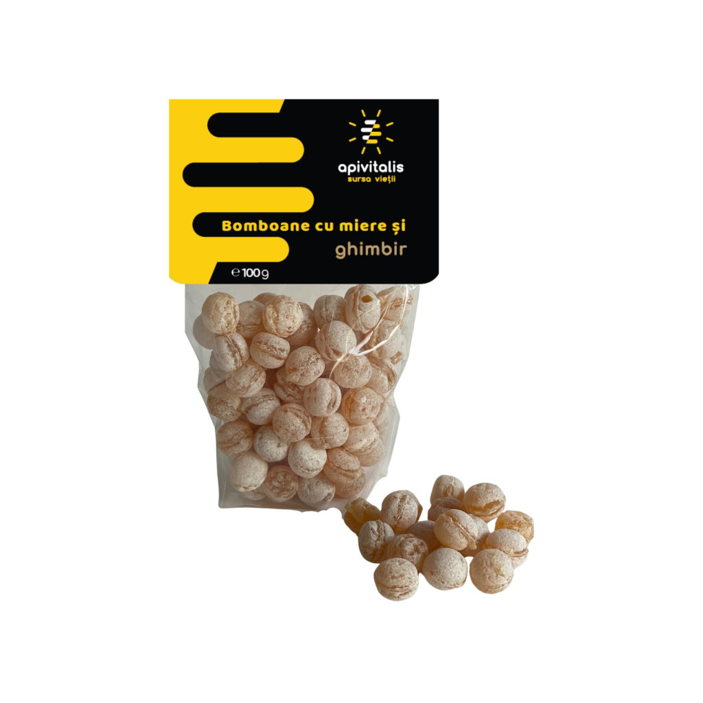 Összetevők: cukor, glükóz szirup, méz 12%, gyömbér esszencia 1%