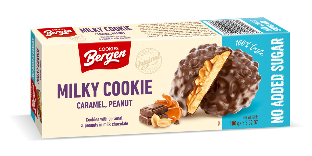 Bergen milky cookie karamellával tejcsokoládéban hozzáadott cukor nélkül 100 g