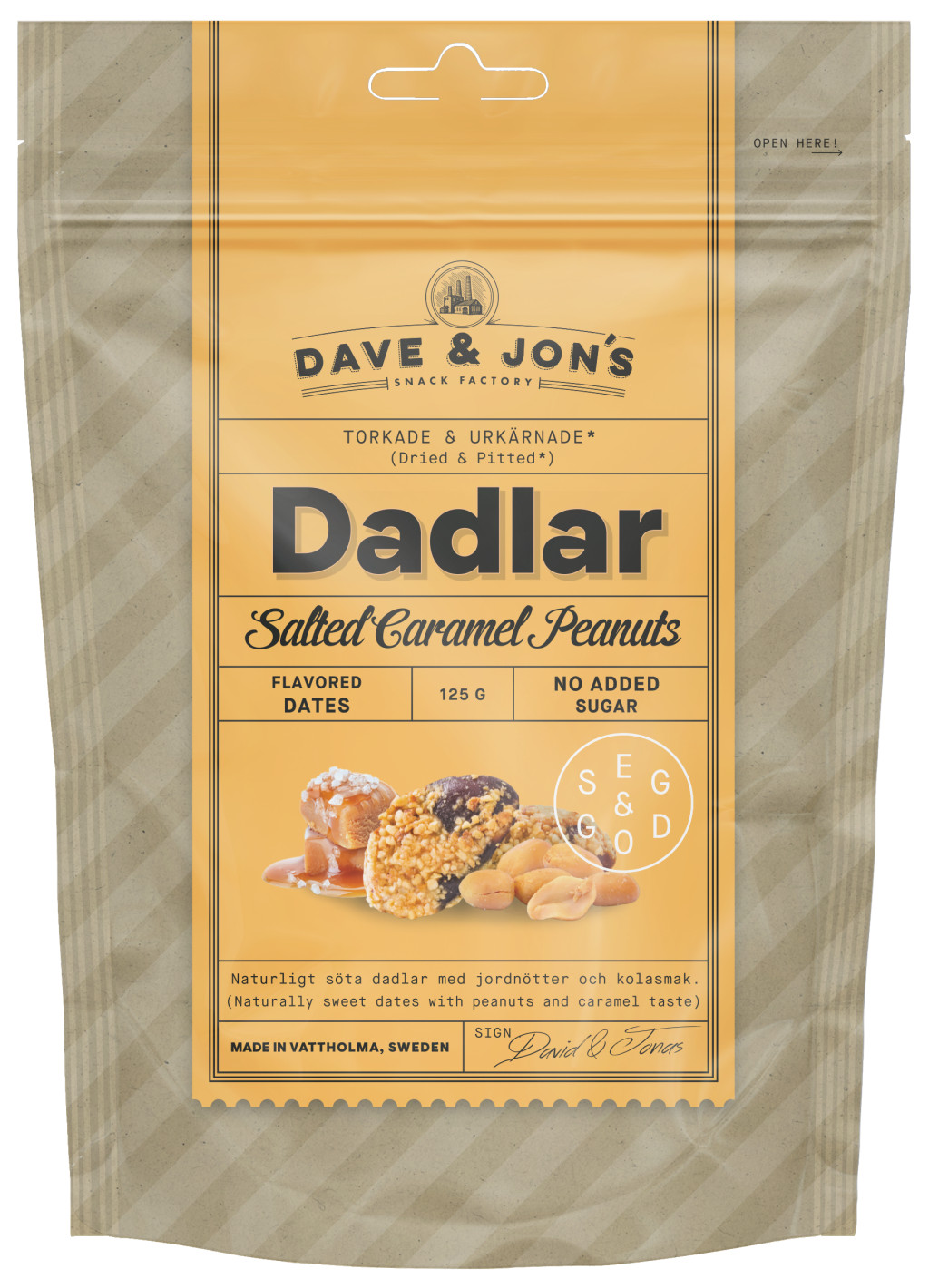 Dave & Jon's dates salted caramel peanut mag nélküli ízesített datolya sós karamell ízben, hozzáadott cukor nélkül 125 g