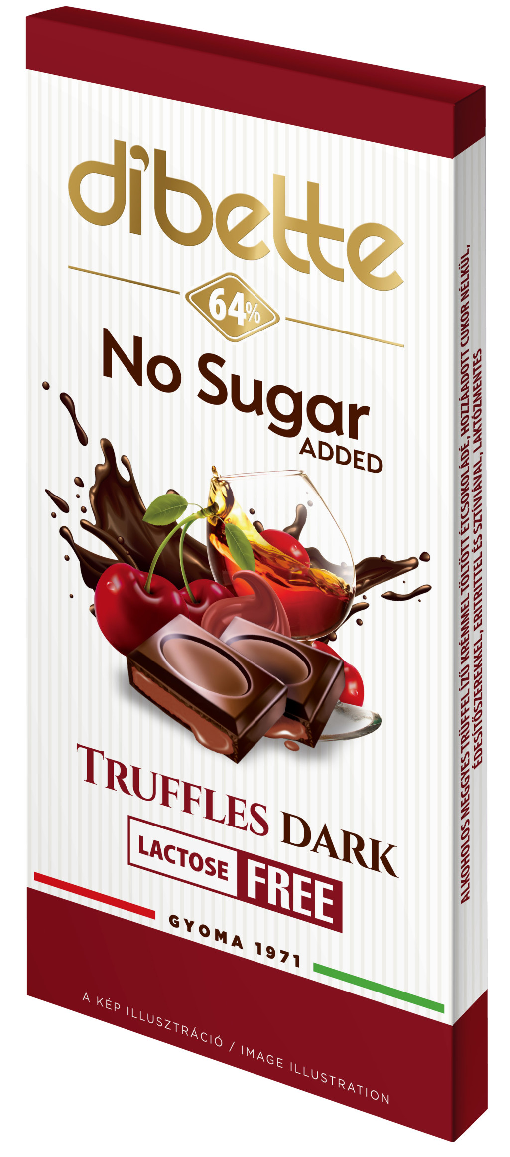 Dibette NAS alk meggy trüffel izű krém töltött étcsok hozzáadott cukor nélkül 80g laktózment, maltittal 52% kakaó
