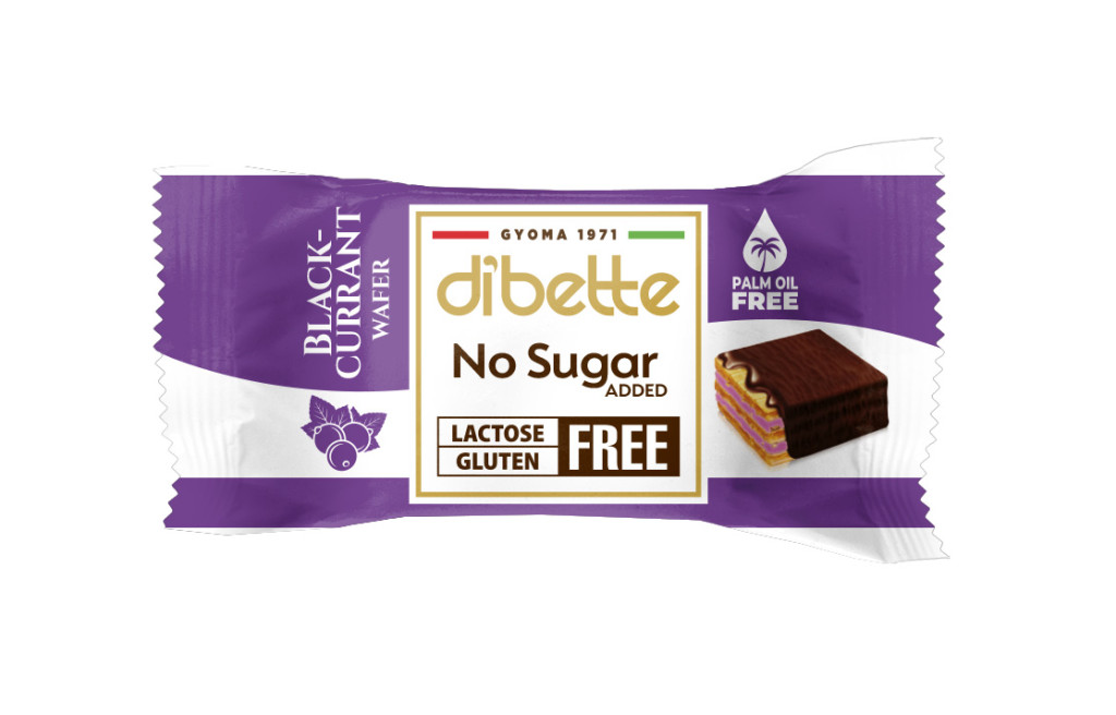 Dibette nas laktóz-, pálma-, gluténmentes feketeribizlis krémmel töltött ostyakocka, hcn, édesítőszerekkel 10 g