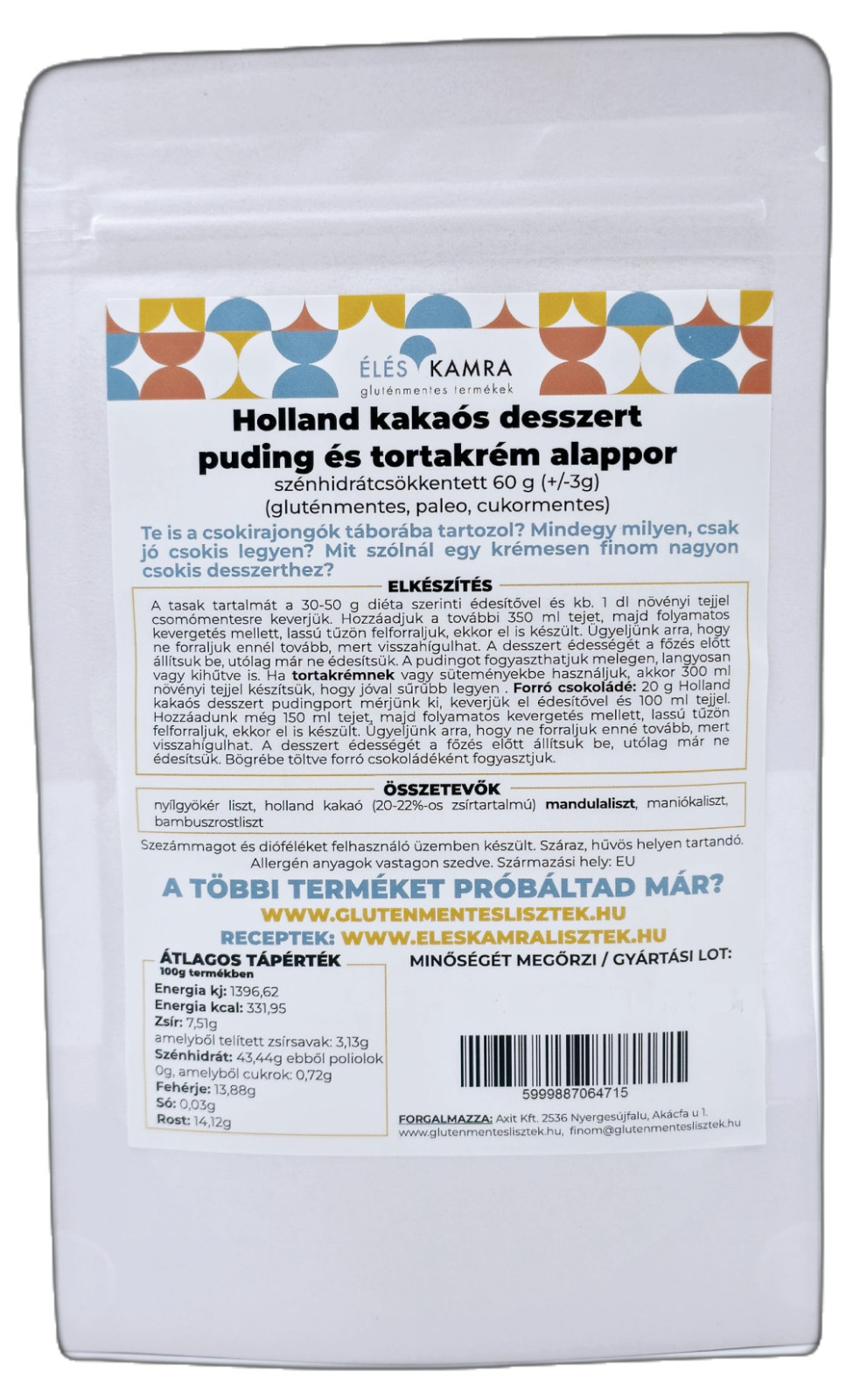 Éléskamra Holland kakaós puding & torta krém alappor CH csökkentett 60g (Paleo)