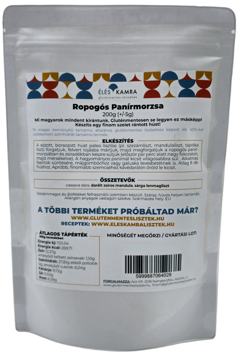 - Éléskamra Ropogós panírmorzsa szénhidrát csökkentett* lisztkeverék