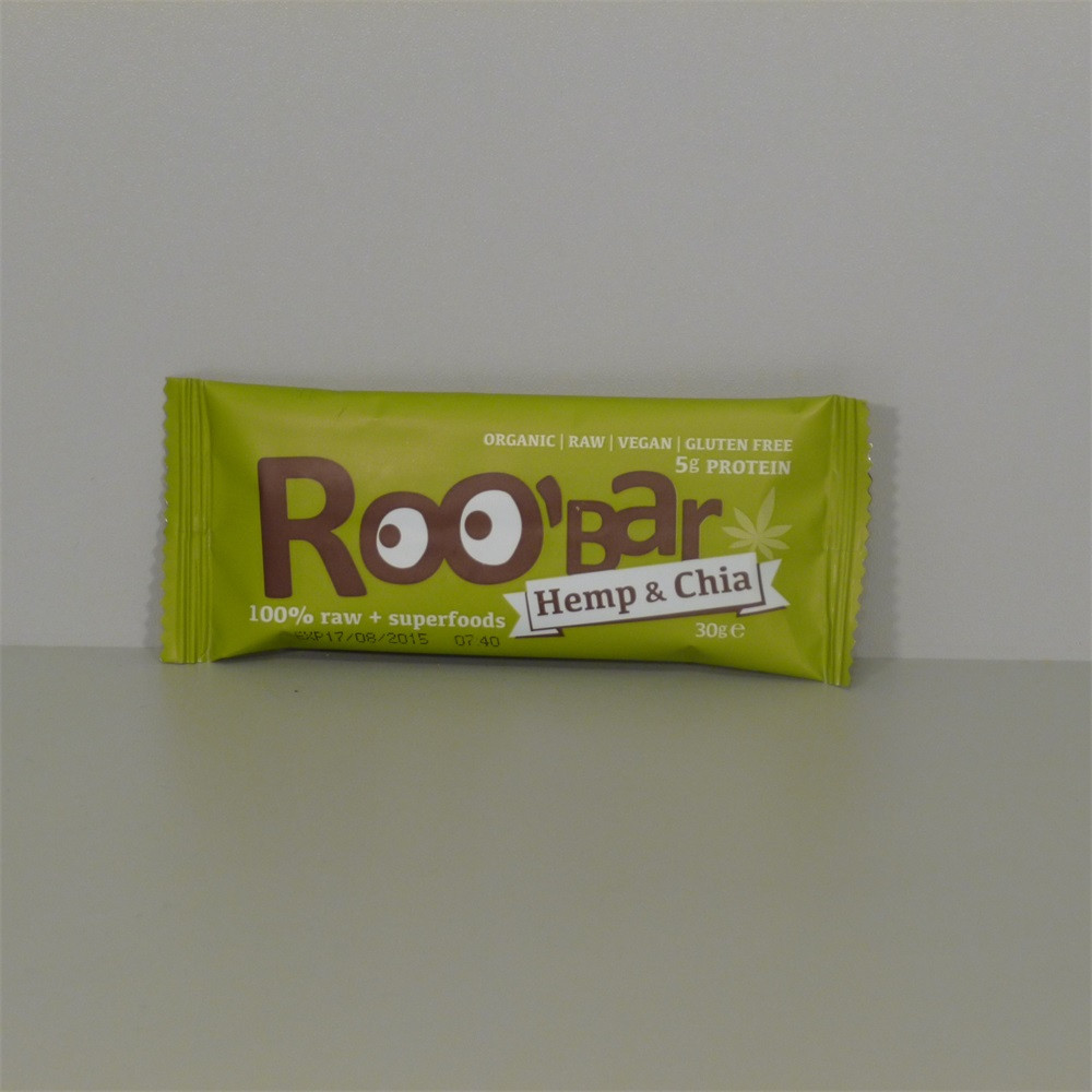 A ROO'bar megalkotott egy olyan protein szeletet, aminek a forrása kizárólag természetes ökológiai eredetű, teljes értékű növényi fehérjeforrás, a kender. Mivel a kender fehérje egy teljes értékű fehérje, tartalmazza az összes esszenciális aminosavat, továbbá rostban gazdag. A chia mag Omega-3 és Omega-6 telítetlen zsírsavakkal, antioxidánsokkal, valamint nyomelemekkel gazdagítja tovább ezt a szeletet. Kiváló tápanyag és enegriaforrás, akár sportolóknak is!