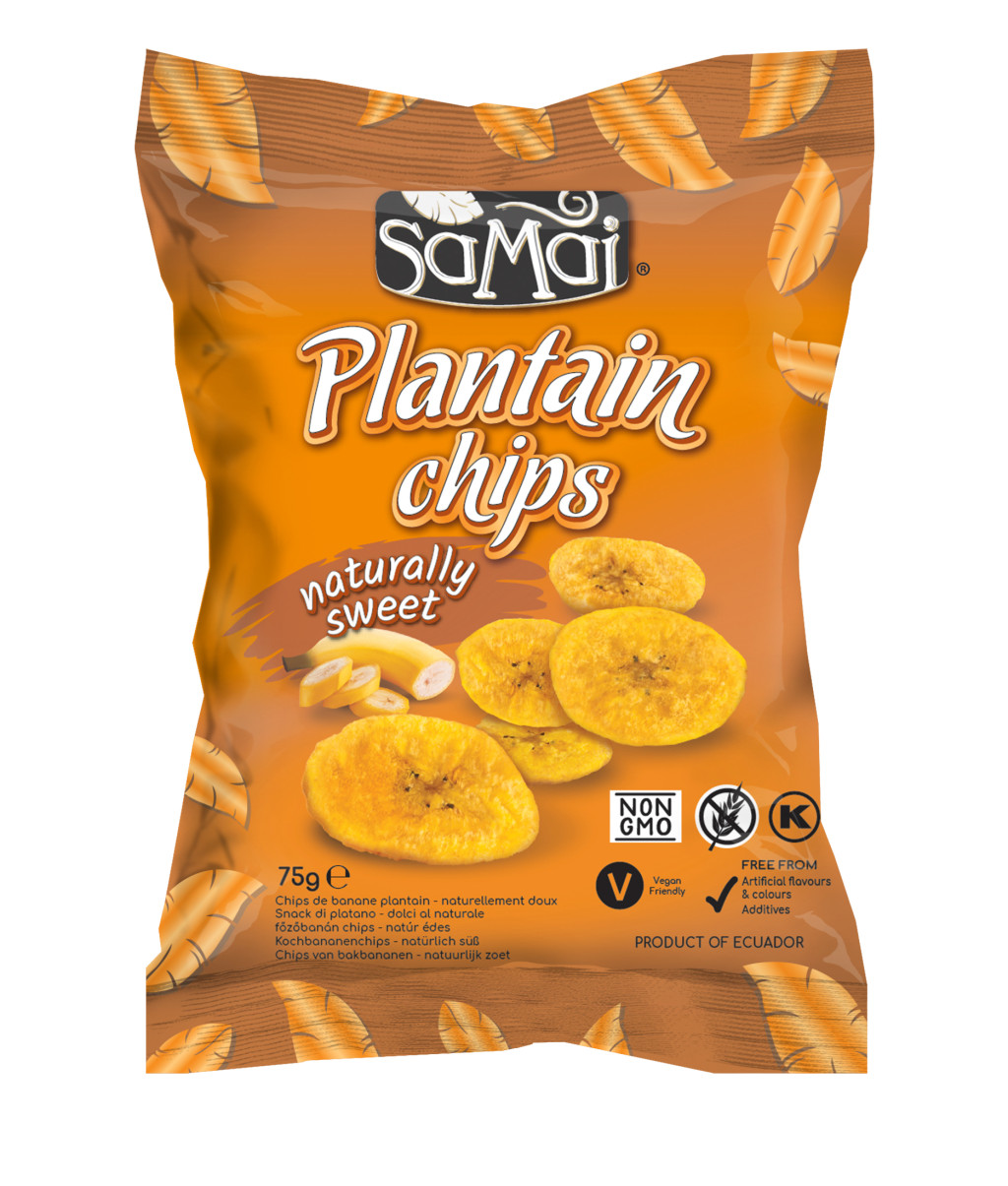 A SAMAI Plantain chips prémium minőségű főzőbanánból készül, melyet Dél-Amerika csendes-óceáni partján, Ecuadorban helyi farmerek termesztenek.