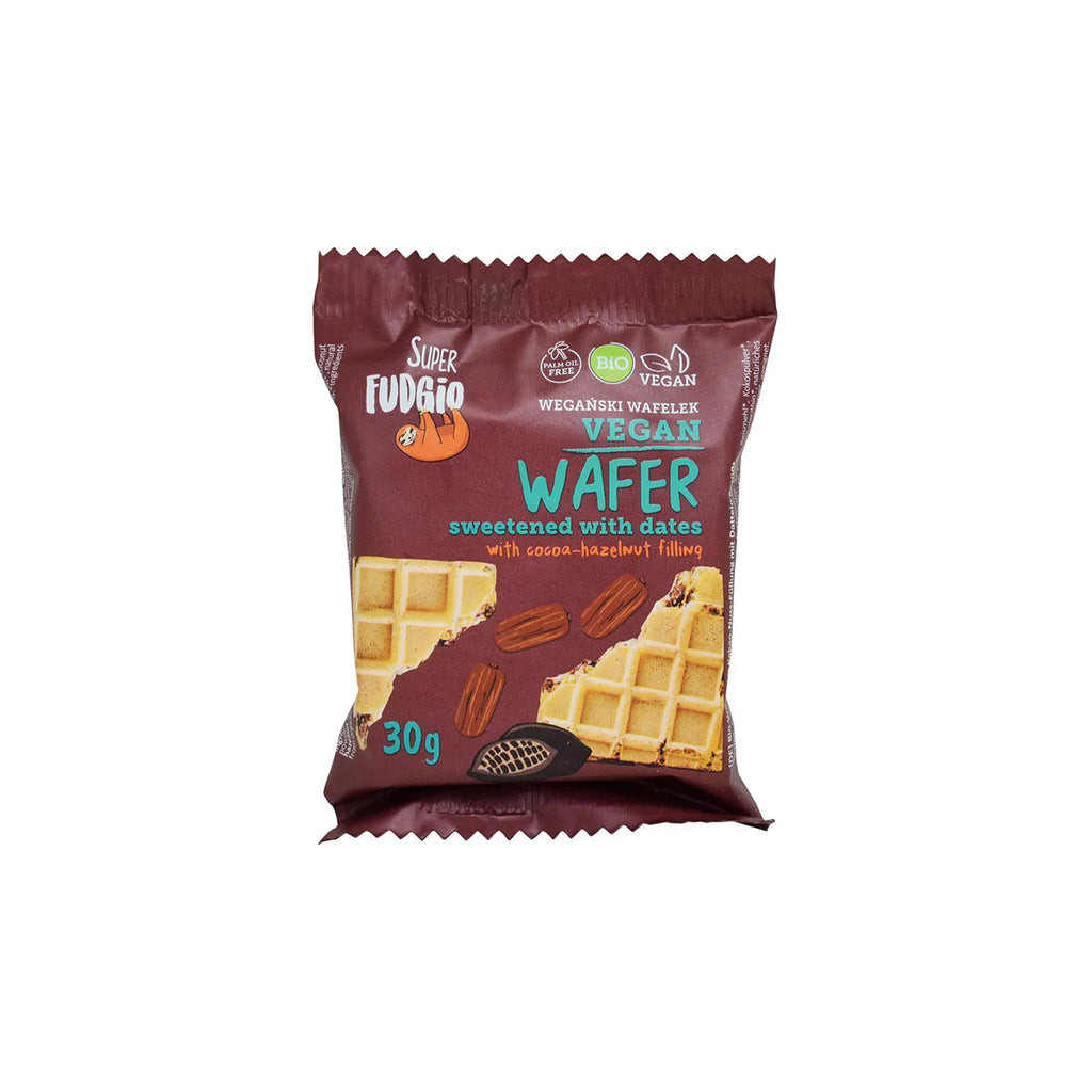 A Super Fudgio's bio ostya kakaós-mogyorókrémmel, datolyával édesítve kényelmes és finom választás a tudatos nassoláshoz.