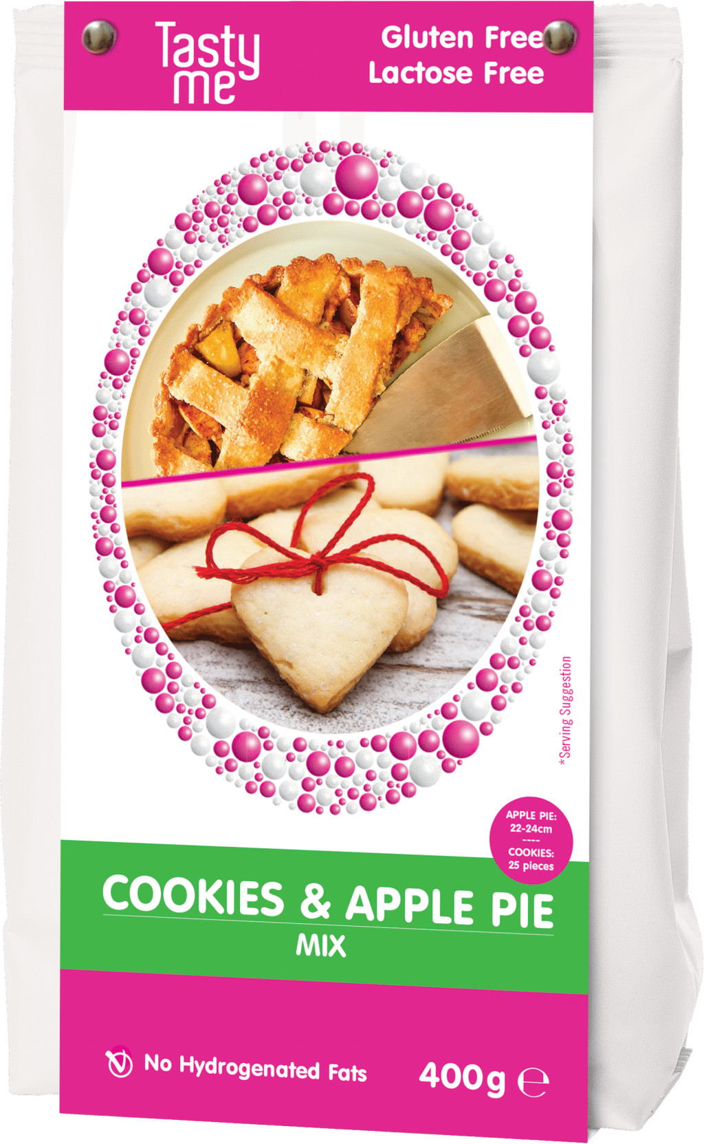 Hidrogénezett zsírok nélkülHasználd a Tasty Me almás pite&keksz keveréket finom kekszek vagy ízletes almás pite készítéséhez!