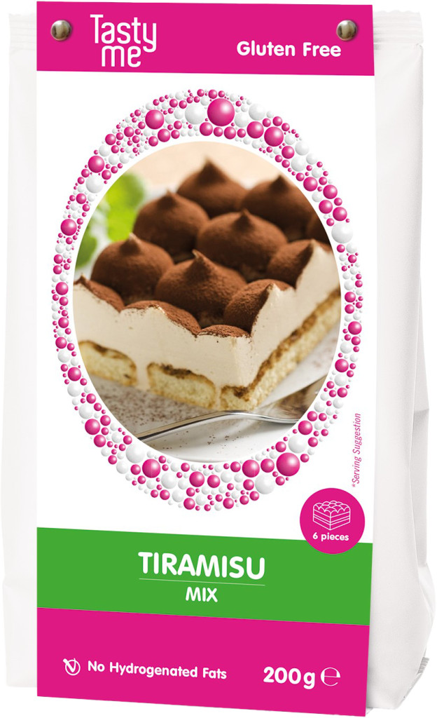 Keverje össze a 200 g keveréket és 500 g hideg tejszínhabot mixerrel 4-5 percig, amíg krémes lesz. Az alaphoz és a középső réteghez használjon gluténmentes babapiskótát (kb. 200g) vagy gluténmentes piskótát (ajánljuk a Tasty me gluténmentes piskótakeveréket). Öntsön 200 ml kávészirupot (vagy hideg eszpresszót némi mandulakivonattal) egy mély tányérba. Mártsa bele a babapiskóta vagy a piskóta felét a keverékbe, és tegye őket kávéval felfelé egy sütőedénybe. A krém felét kenjük a rétegre, és simítsuk el. Ismételje meg mindkét lépést, és tegye a tiramisut legalább 30 percre a hűtőbe. Tálalás előtt szórjuk meg a tetejét kakaóporral.
