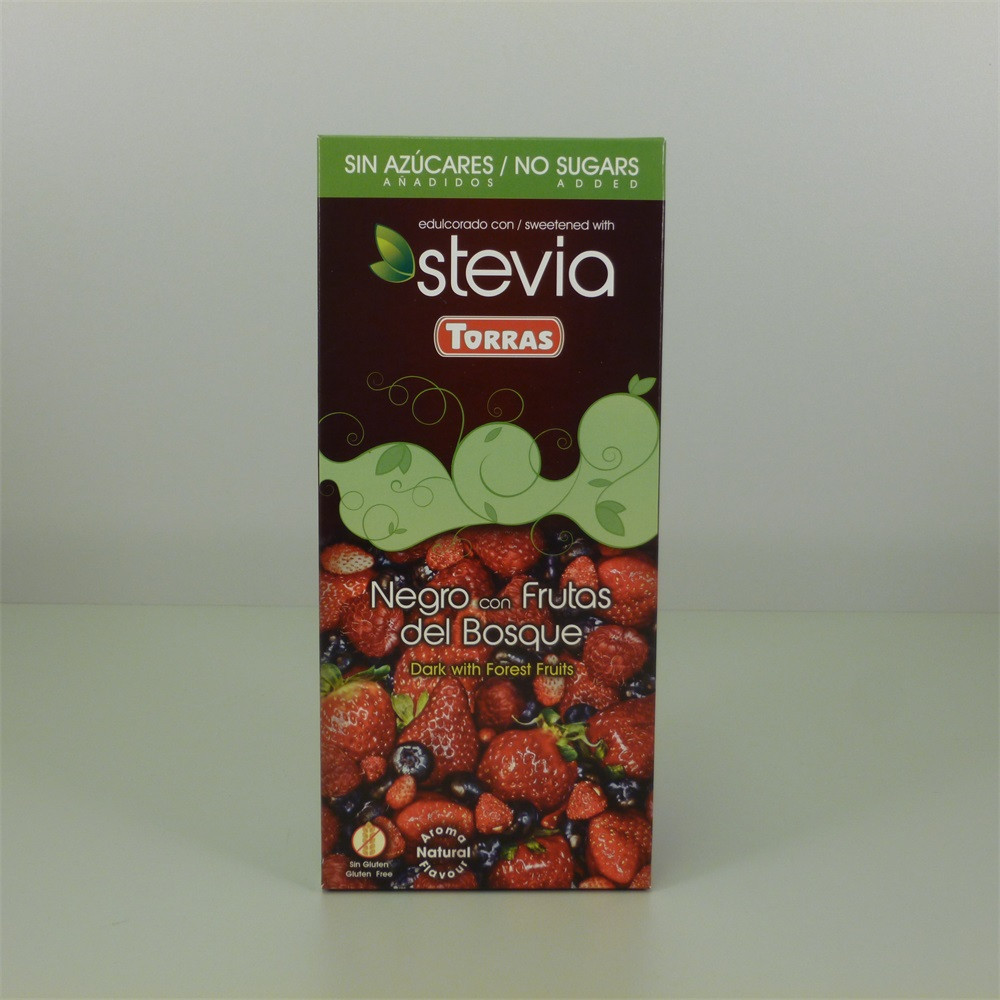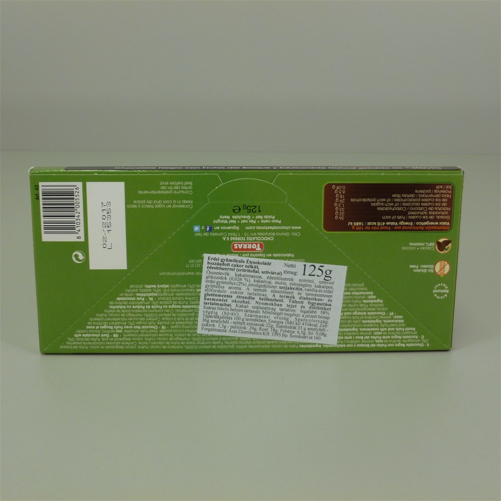 Erdei gyümölcsös táblás étcsokoládé több, mint 60% kakaó tartalommal. Nem tartalmaz hozzáadott cukrot, ahogy glutén tartalmú alapanyagokat sem. Édes ízét a természetes szénhidrátok mellett az eritrit és stevia párosa biztosítja. 100 g-ban mindössze 5 g felszívódó szénhidrát található ebből 2 g cukor, így lehetővé teszi az IR és más cukorszegény diétákba való beillesztését.