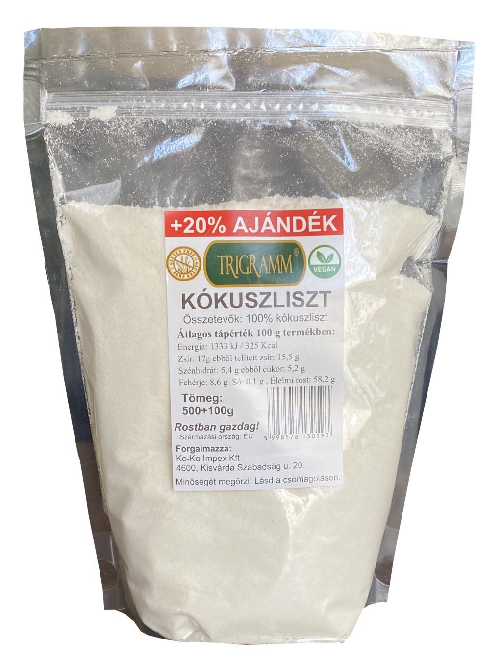 Alacsony zsírtartalmú, finomszemcsés kókuszliszt, amely tökéletesen alkalmas édes, sós sütemények, illetve kenyerek készítéséhez.